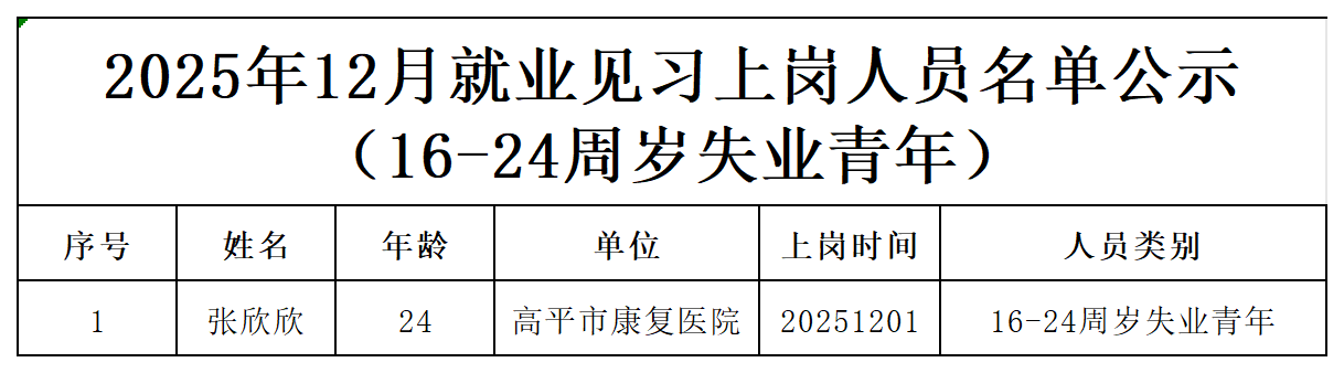 2025年12月就业见习上岗人员名单公示(16-24周岁失业青年)